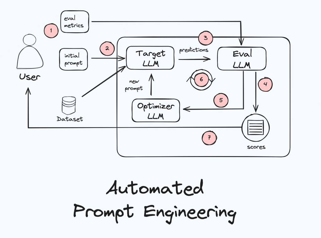 - Automatic Prompt Engineer (APE): This is one of the foundational frameworks. APE frames the problem of prompt generation as a “black-box optimisation” task: you define input/output examples, generate many candidate prompts, evaluate them, and select the best. It automates the “what wording works best” process.