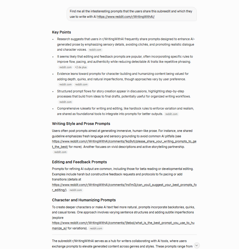 - Shows intermediate steps and reasoning as it iterates, which helps you understand how it reached a conclusion instead of just seeing the final text.