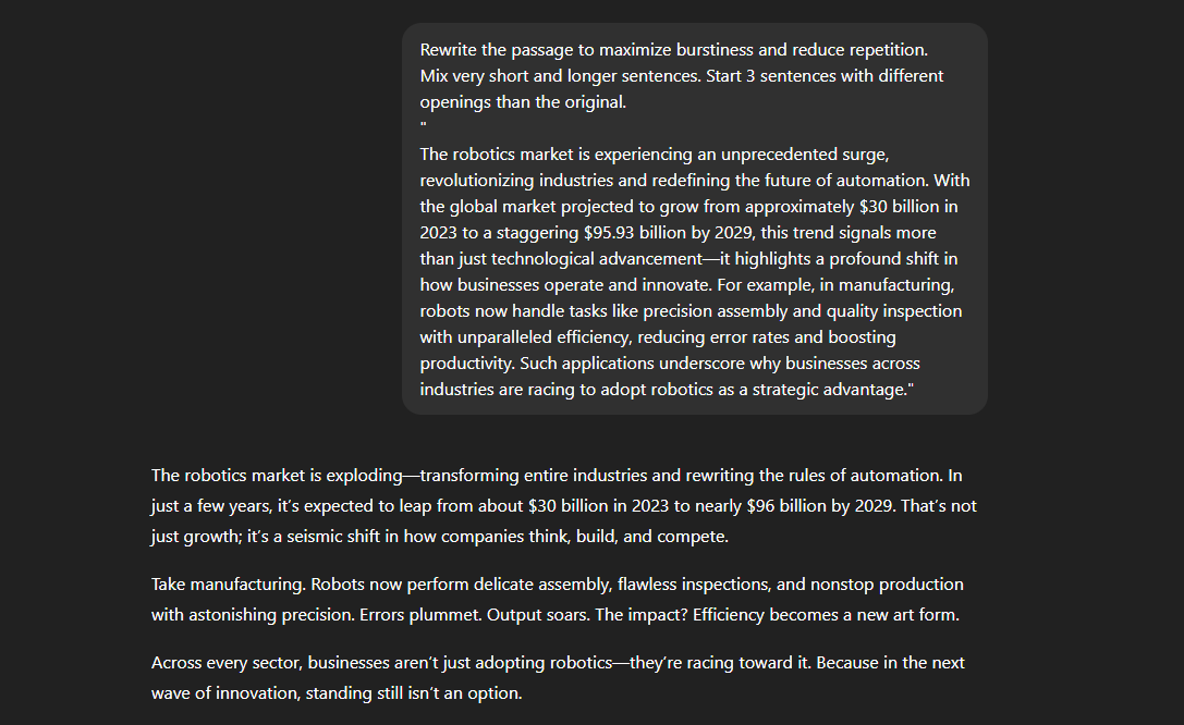 - Prompt systems designed to reduce robotic writing